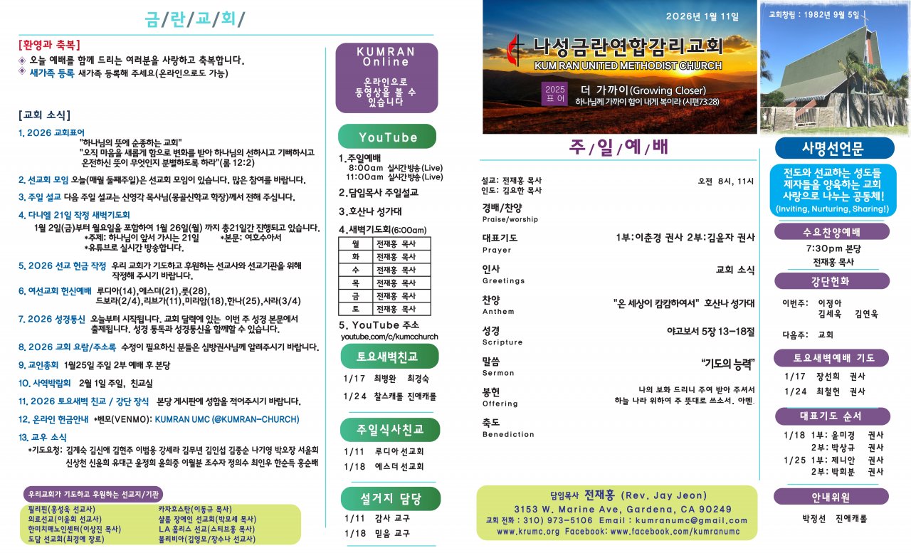 1월 11일(주일) 주보